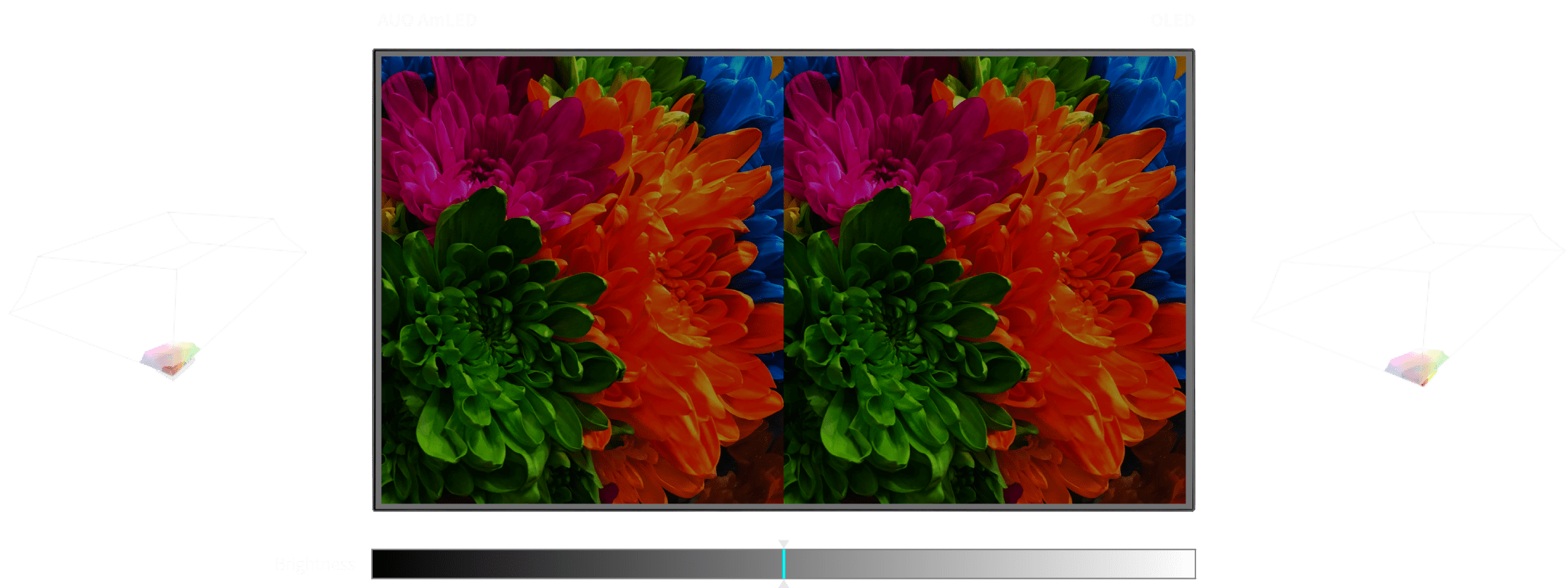 DCI-P3 100% 廣色域,AmLED 在顯著